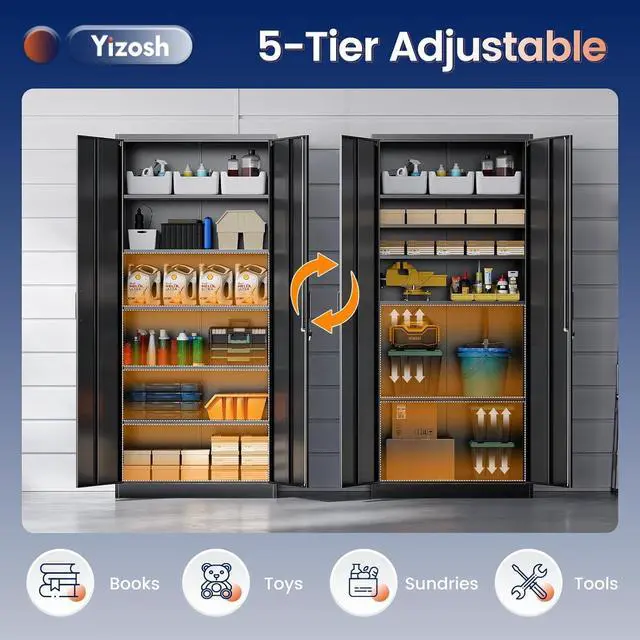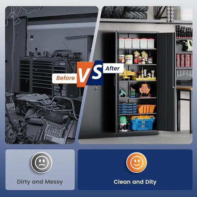 EASY ASSEMBLING: 70.87 inch× 31.5 inch× 15.7 inch (H x W x D). 2 wing doors with a 180°opening angle. The garage storage cabinet is knock-down structure, when you receive it, you need to assemble. The package comes with detailed assembly instructions, easy to assemble.