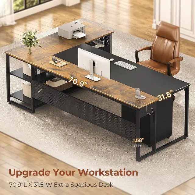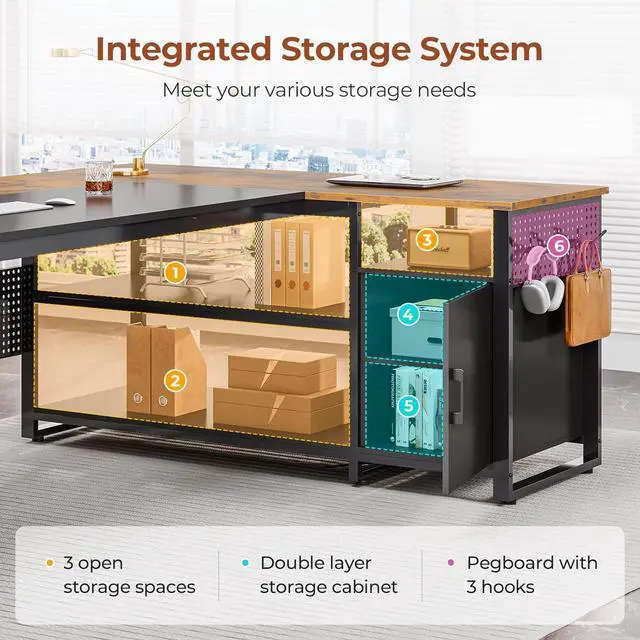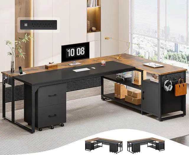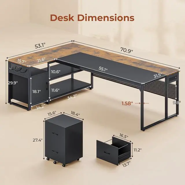 Reversible Desk with Solid ConstructionThis home office desk adopts a reversible design, and the cabinet can be placed left or right according to your needs. The computer desk has a stable & thick metal frame, providing a stable support for your work, study, or gaming needs. Its unique spliced tabletop is waterproof, wear-resistant and easy to clean, ideal for creating a beautiful office/study space.