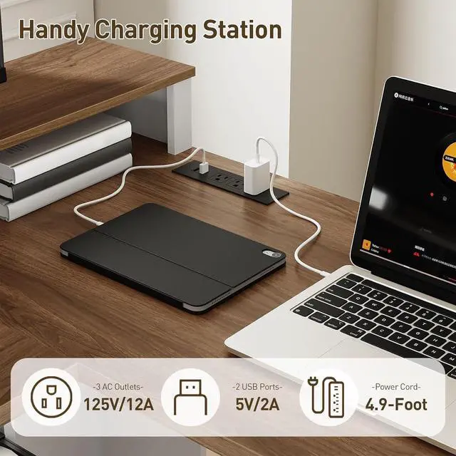 Built-in Charging Station: The l-shaped computer desk features a power strip with 3 ac outlets and 2 usb ports for easy charging of multiple devices like computers, tablets