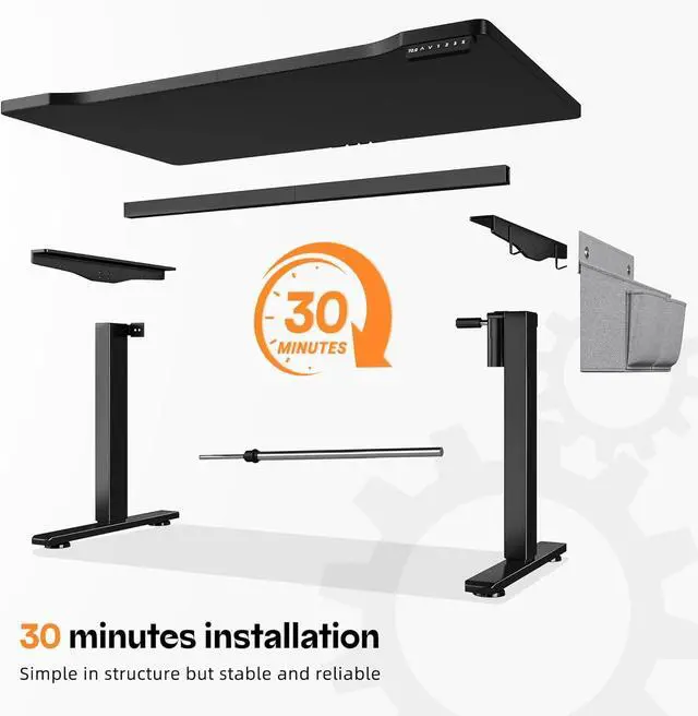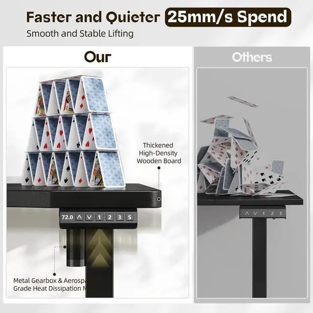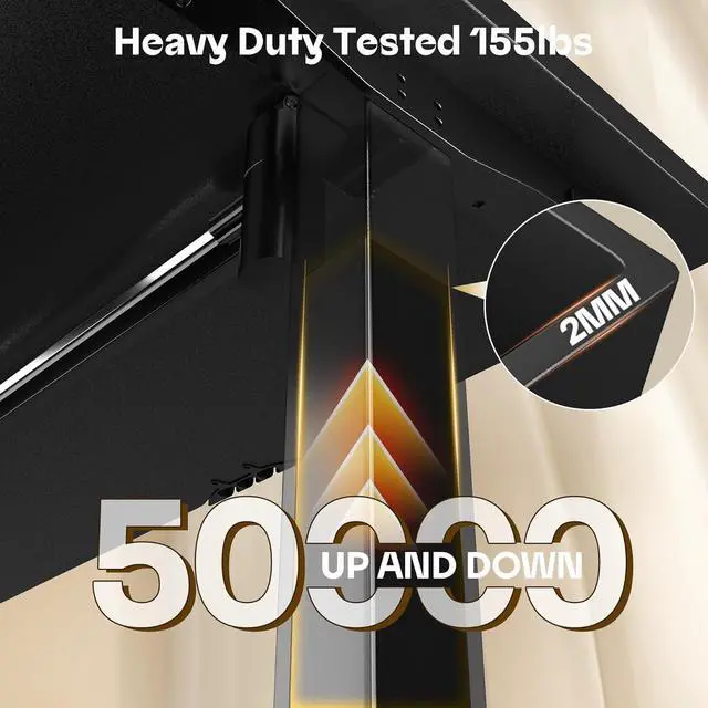 Strong and Sturdy:This electric standing desk boasts an aerospace-grade lift system & industrial-strength desktop, supporting 154 lbs effortlessly. Reinforced dual crossbars minimize wobble, keeping monitors steady even after 100,000 test cycles. Type/write shake-free!