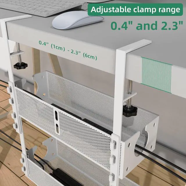 3. NO DRILL & EASY TO INSTALL: Instead Of Damaging Your Desk With Screws Or Drill, Our Under Desk Cable Management Tray Can Be Hanged Directly To Desk With Clamp, And Easy To Install Without Instructions, Make Your Management Plan Burdenless.
