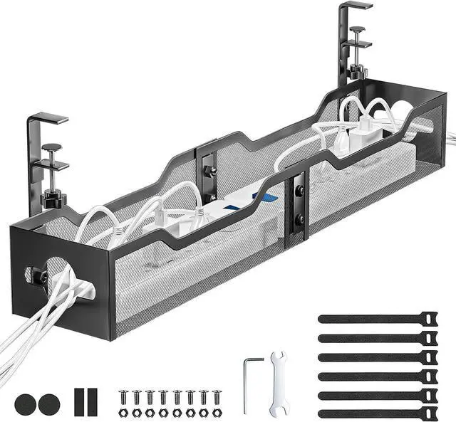 Save Storage SpaceNo more messy, tangled cords on your desk or floor, no more worry about kids tripping over or cords being sucked up by the vacuum cleaner. Our desk wire management can hide your data cables, power cords and outlet strips from your feet to keep your desk and floor clean and tidy.