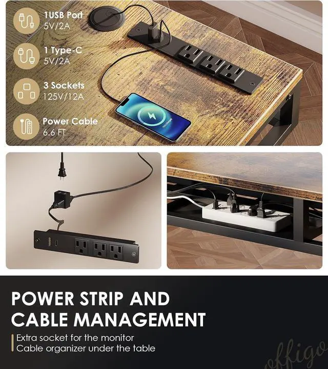 Electric Height Adjustment: The height adjustable standing desk allows you to customize the usage height from 29.9" to 46.1" by using the 3 preset electric buttons for optimal comfort. It equipped with 3 Outlets & 1 USB & 1 Type-C ports, providing convenient charging options for devices at work or play