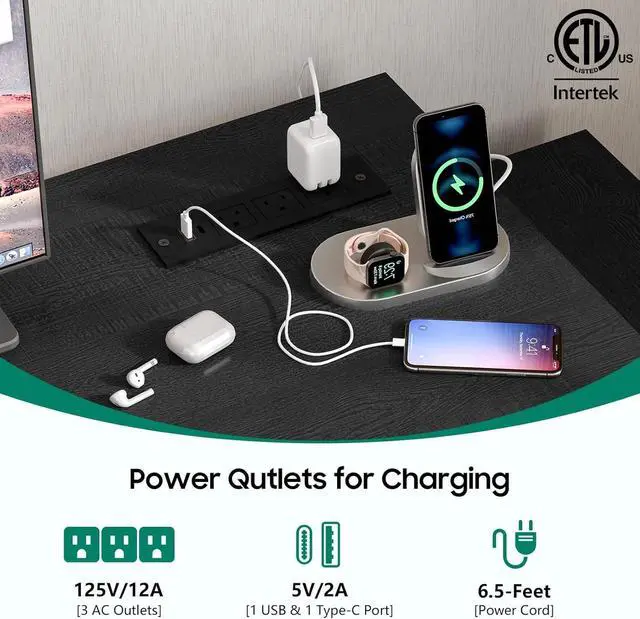 USB Charging Ports & Power OutletsThis executive desk built in 3 AC outlets, 1 USB & 1 Type-C port. Flexible and fast charging for office power devices such as computers, phones and tablets. Provide great convenience for your work and life.