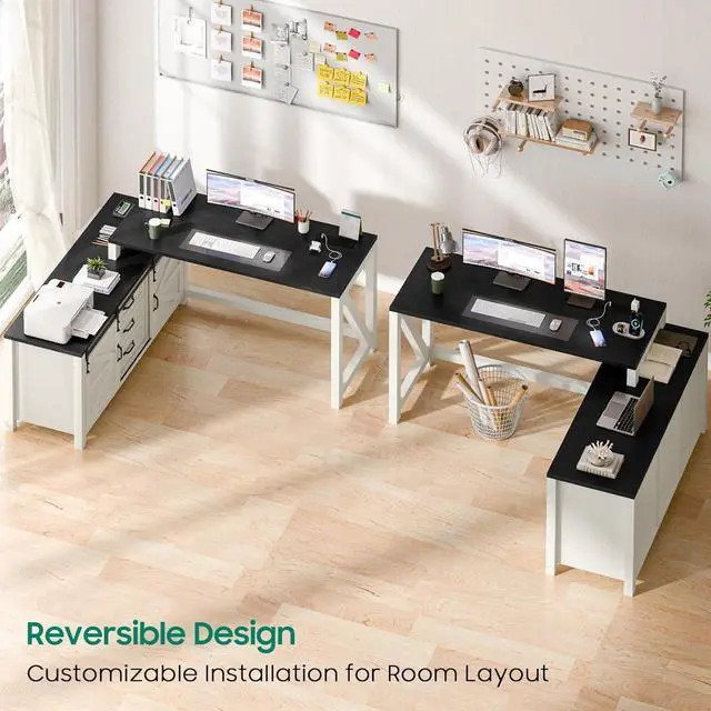 Reversible L-shaped DesignThis L-shaped computer desk has a great reversible design. It can be flexibly adjusted to fit different room corners according to space requirements and personal preferences. Provides users with a convenient workspace.