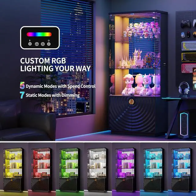 Customizable RGB LightingWith 5 dynamic and 7 static lighting modes, you have full command over your display's ambiance. Precisely adjust the brightness of any static color to match your mood. For entertaining moments, switch to a dynamic mode and bring your collection to life with captivating color transitions. Set the scene, your way
