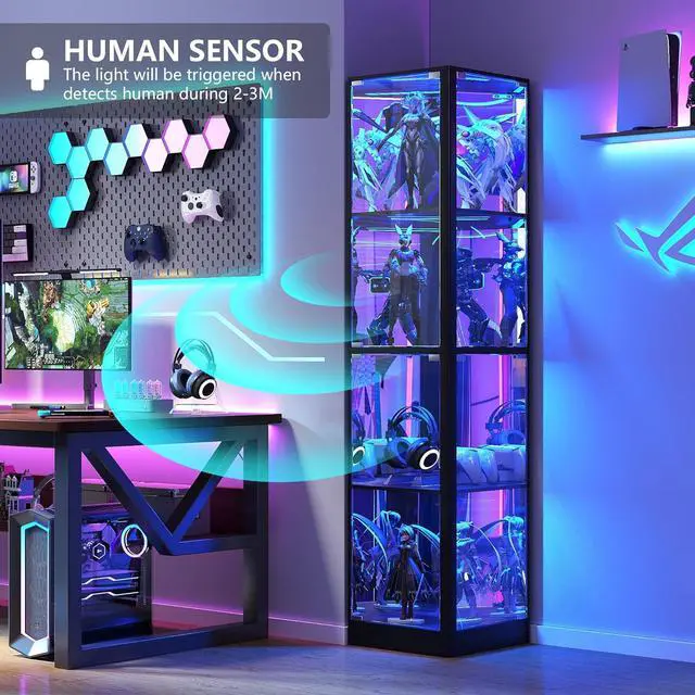 3-Color Motion Sensor LightingBring your treasures to life with adjustable LED lights in warm, cool, and blue tones. The built-in motion sensor lights up as you approach, creating an elegant glow without lifting a fingerperfect for nighttime ambiance or highlighting your collection during gatherings