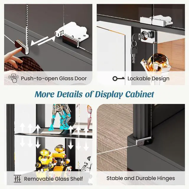 Durable & Stable ConstructionMade with tempered glass and a reinforced frame, this cabinet is strong, safe, and built to last. Perfect for a cozy reading nook, chic dining room, or home office display