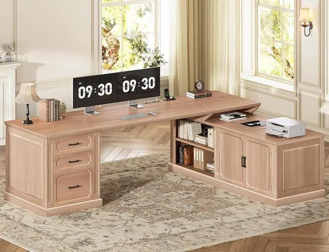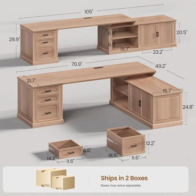 Reversible DeskReversible 70.9 inch l shaped executive desk or 105 inch long office desk. l shaped desk is perfect for tucking into a corner, it can hold your computer, monitor, keyboard, files, books or CPU stand for home office. Or 105 inch long desk can hold two-person studying or writing no interference.