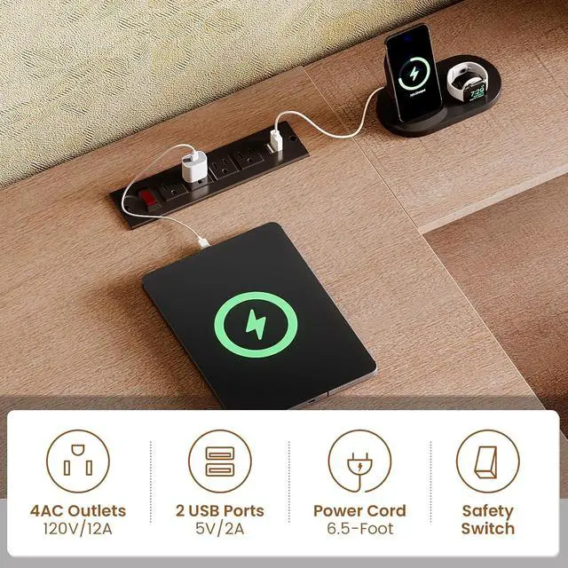 Charging PortOur charging station includes 4-Outlet & 2 USB Ports to provide power for up to 6 devices simultaneously. Power outlet allows you to charge cell phones, tablets, notebooks, etc. This 70.9 inch l shaped desk with storage offers ample workspace for home offices or gaming accessories.