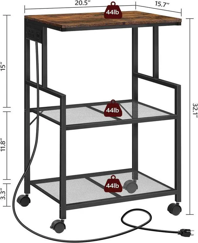 Printer Stand with Charging Station: A practical power strip is designed beneath the top panel, providing 2 standard outlets and 2 USB ports for your printer, household appliances and other devices.