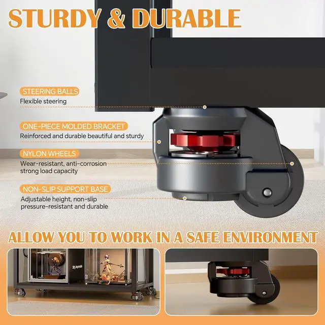Heavy-Duty Construction: Constructed with a robust metal frame and thickened plates, it boasts strong load-bearing capacity, ensuring ultimate stability during printer operation. Equipped with four 360-degree omnidirectional casters at the bottom, you can easily move the entire workstation to any desired location and lock it securely.