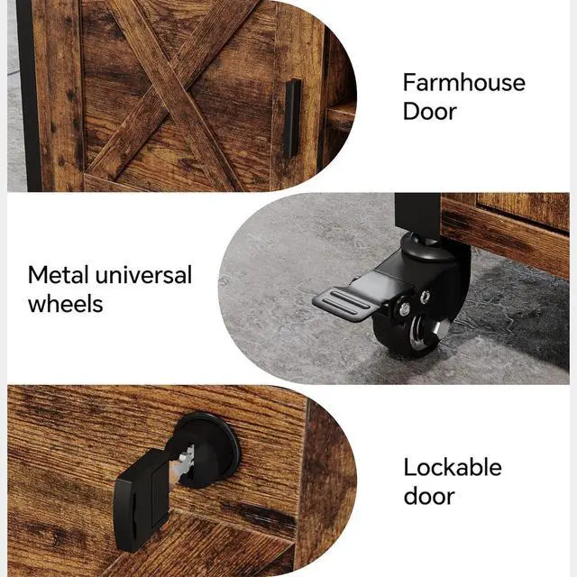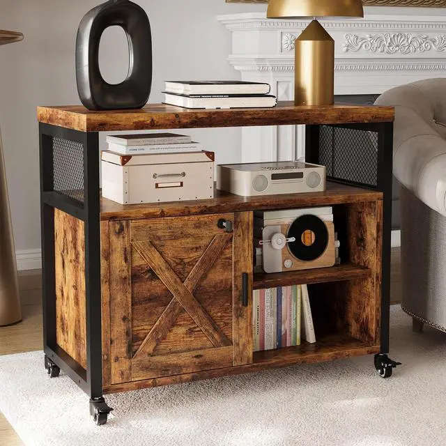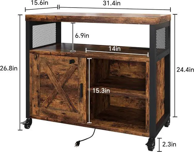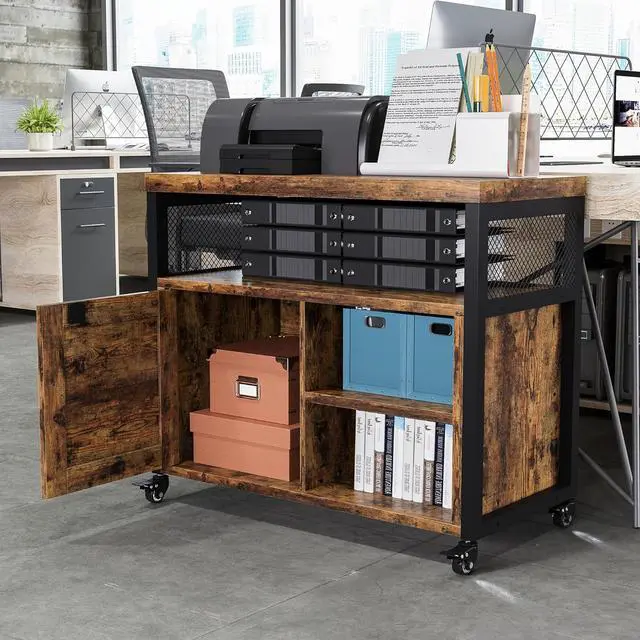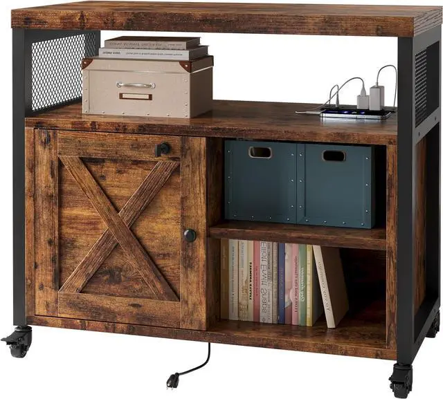 Farmhouse Printer Stand with Storage, Rolling Printer Cabinet with Shelves, Charge Station, Wheels, and File Cabinet for Home Office Storage (Rustic Brown)
