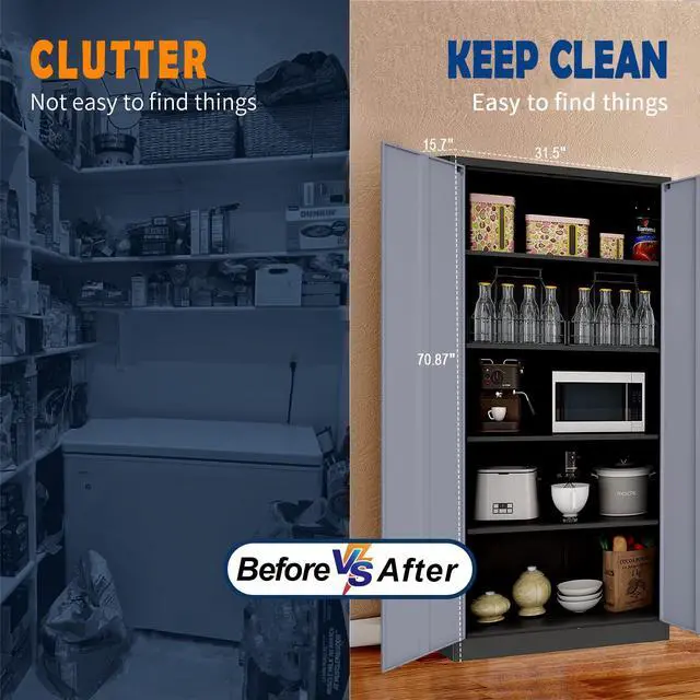Heavy Duty and High Quality Material- Our metal storage cabinet is made of reinforced heavy-duty metal frame with a load capacity of up to 120lbs per shelf. The environmental protection powder coating makes it scratch and rust-resistant, ensuring durability and longevity.