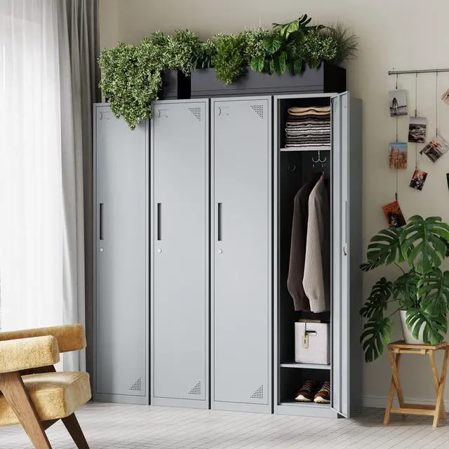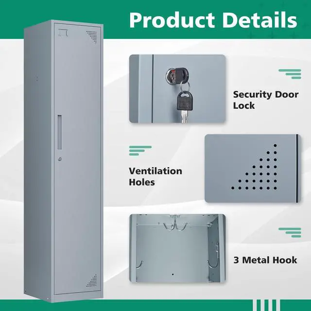 Sturdy and Stylish DesignEach locker door features stylish vents to keep air flowing and an independent locking system for added security. The crash pad design ensures quiet door operation. Each layer has 4 metal hooks that can bear up to 120 pounds.