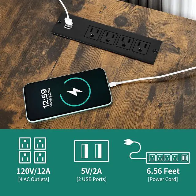 Convenient Charging Station: This U shaped computer desk features 4 standard plug outlets, 2 USB ports & a 6.56 ft power cord to charge your phones, laptops, printer, gaming gear and other office devices, making your life easier