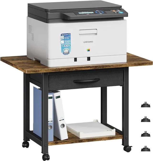 Under desk Printer StandRolling printer cart equipped with 4 lockable caster wheels, offer mobility and stability, allowing secure and convenient relocation. Printer tables especially suitable for home office small spaces. Package come with 4 replacement adjustable feet to fit your different demand.