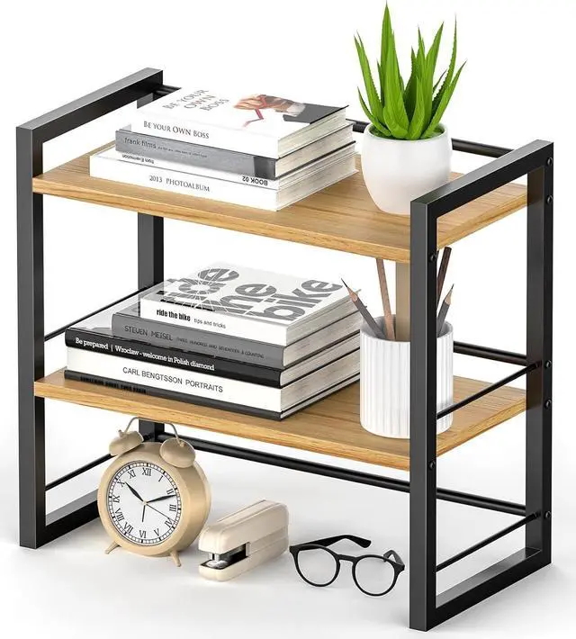 Great Decoration at Home/office -- Our desk shelf can be used upside down, maximizing its functionality to meet your needs. Two-layer shelf offers spacious storage space for office supplies, books, monitors, spice vases, plants, etc.