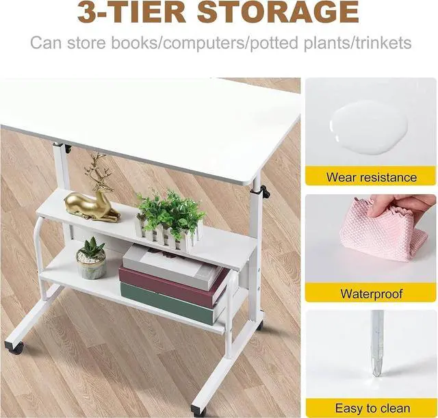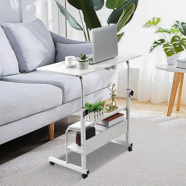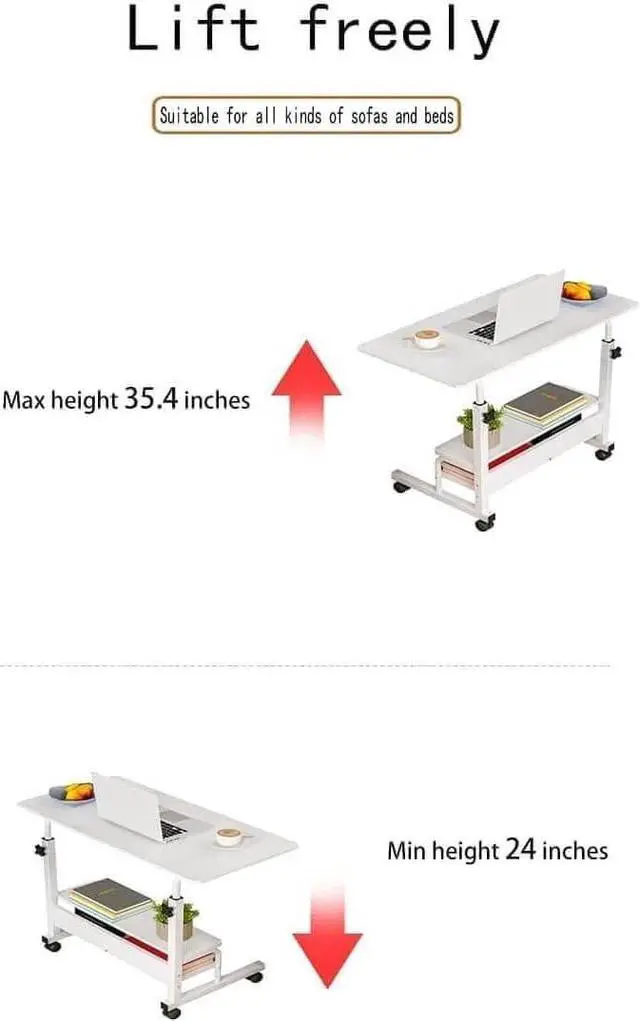 Adjustable Height&Easy Move: This kind of mobile laptop desk can be adjusted to your ideal position from 24" to 35.4 ". You can use the adjustable height mobile desk sitting or standing and the mobile computer desk which have 4 smooth wheels can also make desk move wherever you want.