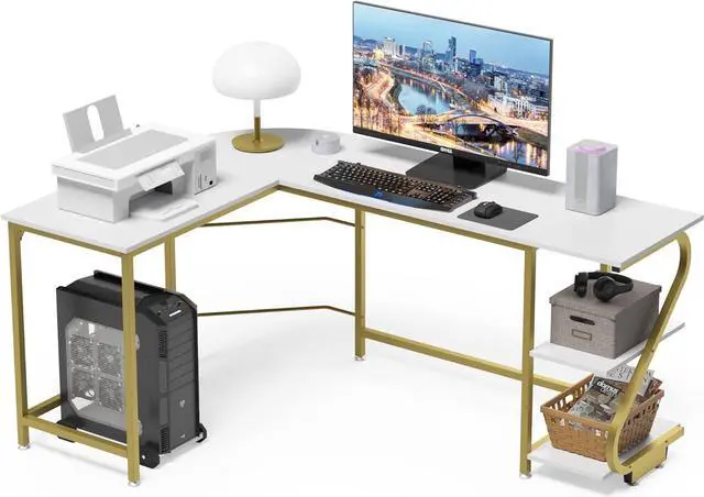 [Extra Storage Space] This l-shaped computer desk is designed with open 2-tier shelves, perfect to store books, documents, files, or small decorations. As an option, the top shelf can be removed to make room for a computer tower.