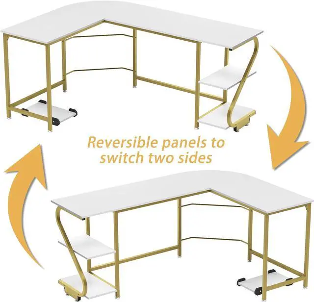 [Upgrade Reversible L Shaped Desk] This corner computer desk is designed with reversible panels, allows to switch two sides easily to meet the needs of any corners.