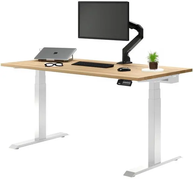 Desky Dual Hardwood Sit Stand Desk - White Ash / 72 x 30 inches / White