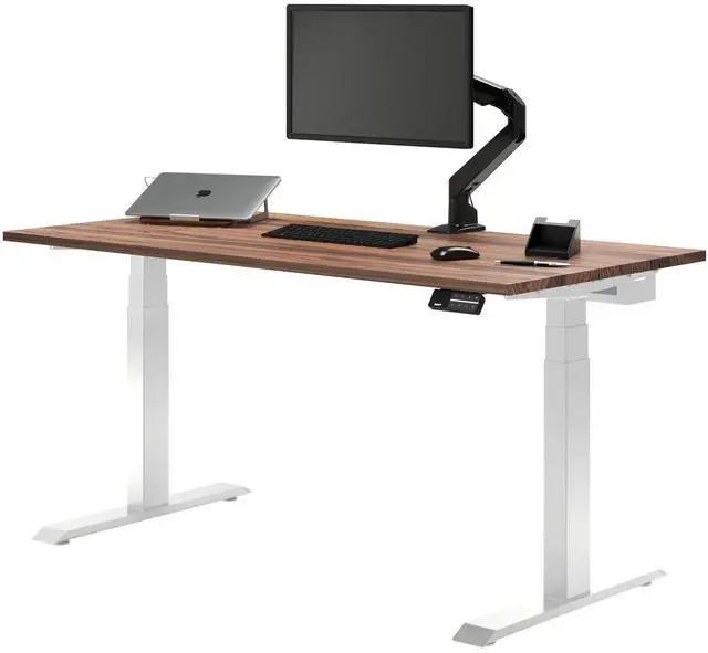 Desky Dual Hardwood Sit Stand Desk - Walnut / 60 x 30 inches / White