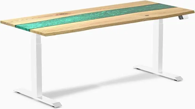 Desky Dual Resin Hardwood Sit Stand Desk - White Ash Emerald River / 72 x 30 inches / White