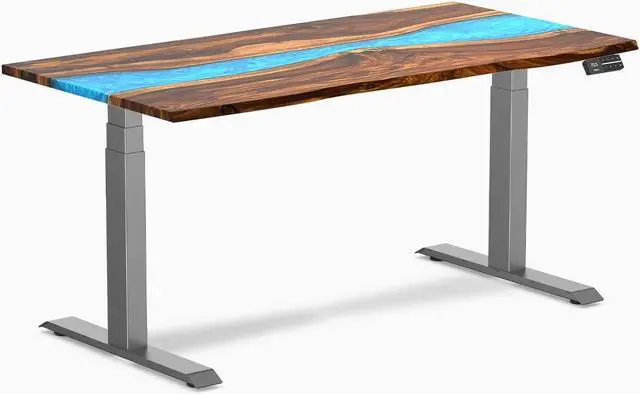 Desky Dual Resin Hardwood Sit Stand Desk - Pheasantwood Blue River / 60 x 30 inches / Space Gray