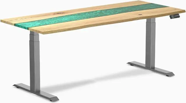 Desky Dual Resin Hardwood Sit Stand Desk - White Ash Emerald River / 72 x 30 inches / Space Gray