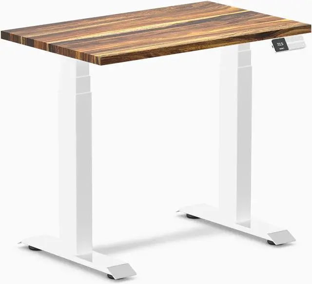 Desky Dual Mini Hardwood Sit Stand Desk - Pheasantwood / 32 x 20 in / White