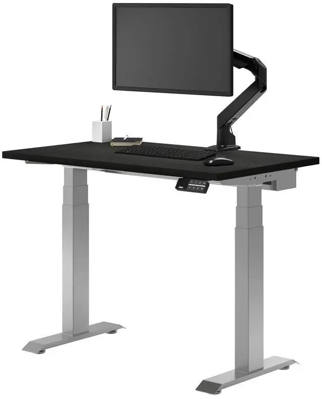 Supporting up to 308 lbs, this desk handles multiple monitors, towers and accessories with ease. The reinforced steel frame and stable base keep every component steady at any height.
