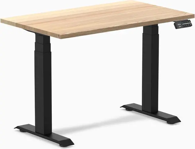 Desky Dual Mini Hardwood Sit Stand Desk - White Ash / 40 x 24 in / Matte Black