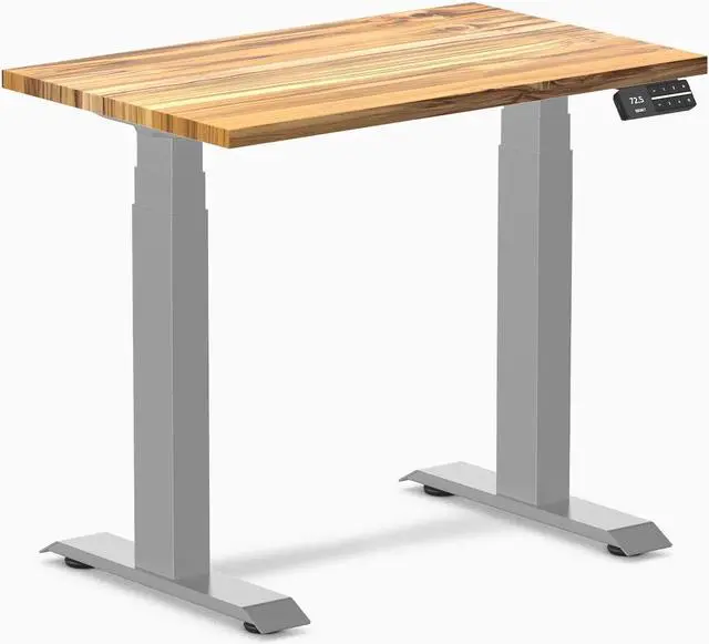 Desky Dual Mini Hardwood Sit Stand Desk - Teak / 32 x 20 in / Grey