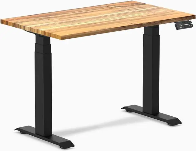 Desky Dual Mini Hardwood Sit Stand Desk - Teak / 40 x 24 in / Matte Black