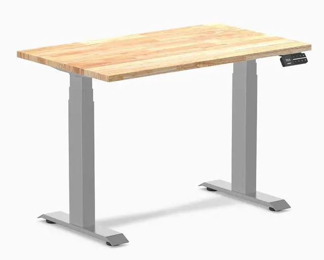 The Desky Dual Mini Rubberwood Sit-Stand Desk delivers ergonomic benefits and functionality in a compact design. Ideal for small workspaces, it supports a full height range ( 23.6" 49.2" ) to promote movement, alleviate posture-related strain, and boost productivity.