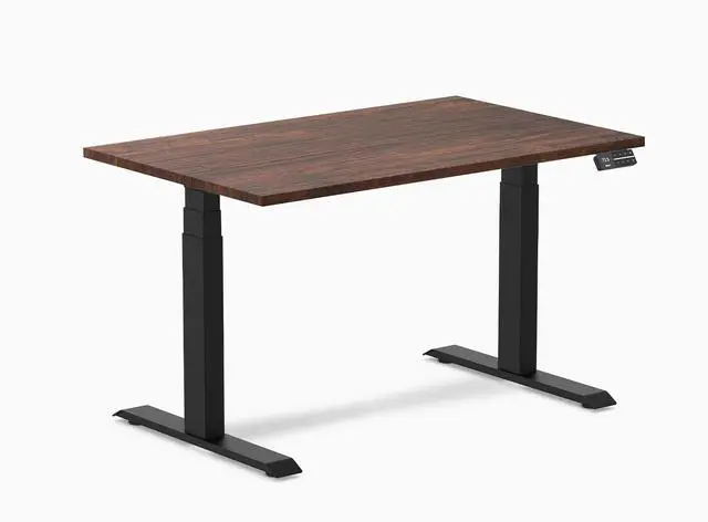 The Desky Dual Softwood Sit-Stand Desk blends superior stability with rustic charm, crafted from American Pine, Reclaimed Pine, or Acacia. Its height range of 23.6" to 49.2" accommodates sitting, standing, or leaning, ensuring ergonomic comfort for 95% of users.