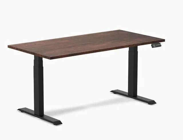 The Desky Dual Softwood Sit-Stand Desk blends superior stability with rustic charm, crafted from American Pine, Reclaimed Pine, or Acacia. Its height range of 23.6" to 49.2" accommodates sitting, standing, or leaning, ensuring ergonomic comfort for 95% of users.