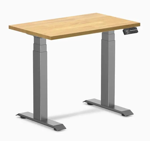 The Desky Dual Mini Rubberwood Sit-Stand Desk delivers ergonomic benefits and functionality in a compact design. Ideal for small workspaces, it supports a full height range ( 23.6" 49.2" ) to promote movement, alleviate posture-related strain, and boost productivity.