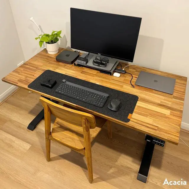 The Desky Dual Softwood Sit-Stand Desk blends superior stability with rustic charm, crafted from American Pine, Reclaimed Pine, or Acacia. Its height range of 23.6" to 49.2" accommodates sitting, standing, or leaning, ensuring ergonomic comfort for 95% of users.