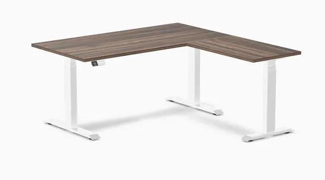 Desky L-Shape Laminate Sit Stand Desk - Jarrah Legno / 59 x 29.5 x 61.5 x 20 in / White