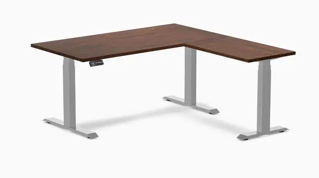 Desky Rubberwood L-Shape Sit Stand Desk - Red Walnut / 60 x 30 x 62 x 20 in / Gray