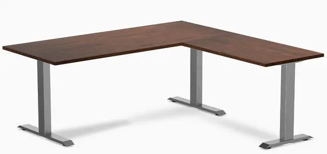 Desky Zero Rubberwood L-Shape Office Desk - Red Walnut / 72 x 30 x 70 x 24 in / Space Gray