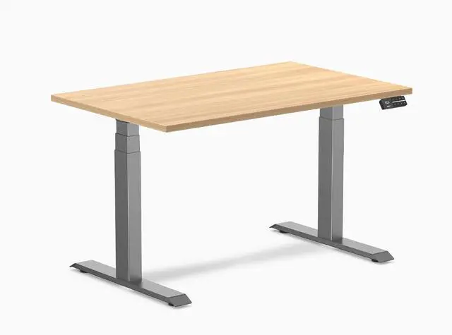 Desky Dual Laminate Sit Stand Desk - Sublime Teak / 47.2 x 29.5 in / Space Gray