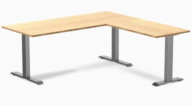 Sustainably Sourced Bamboo Fixed Height DeskDesky's Zero Bamboo L-Shape Office Desk is an ideal choice for any workspace. Its sturdy steel frame ensures a reliable, long-term solution, while the bamboo desktop adds an environmentally conscious touch to your office. With a range of finishes and colours available, you can find the perfect fit for your space. Not only is it eco-friendly and durable, but its budget-friendly price makes it an excellent investment for any business or home office. Bamboo is known for its strength and durability, making it an ideal choice for desktop construction.