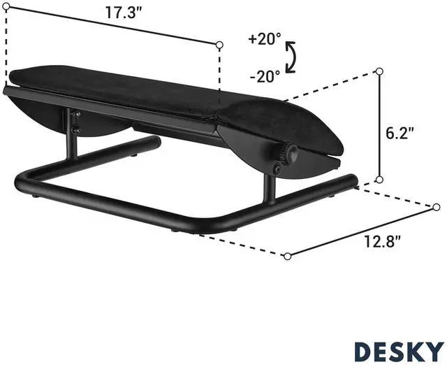 +20°/-20° Angle Incline helps you find the best, most ergonomic position. Tilting Platform - For extra comfort, the platform of the footrest can be tilted to find the perfect angle for your feet. Soft Removable Covering - Keep your footrest clean and fresh with the easy-to-remove suede cover. The internal foam is also soft and comfortable against your skin. Angled For Perfect ErgonomicsThe Desky Cushioned Footrest Tilting Platform gives you -20 or +20 degrees of movement, so you can find the perfect angle for your feet. This adjustable feature allows you to adjust and customize your comfort level, making it the ideal footrest for any workspace. Our adjustable knob ensures that the platform remains stable and secure at all angles - so you can concentrate on the task at hand without worrying about your feet slipping. Removable CushionThe Desky Cushioned Footrest is designed with comfort and convenience in mind. The removable suede cover makes it easy to keep your footrest clean, while the soft internal foam provides a luxurious feel against your skin. The premium materials used in this footrest make it an ideal addition to any workspace, providing optimal support and comfort for long days at your desk.