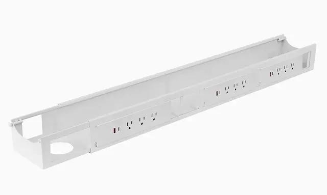 Desky Integrated Cable ManagementThe Desky Integrated Cable and Power Channel gives your cables total protection but allows easy access. With the option to add up to 9 PowerPoint and 3 x USB-A and 3 x USB-C, you can power the most complex setup. The enclosed design means everything is completely our of site so your desk should be today above and below. Also incorporates data cables, so all your cords are accounted for. Available in white, matte black and gray. Clean and Hidden Cable ManagementCables present one of the biggest risk factors in the office.