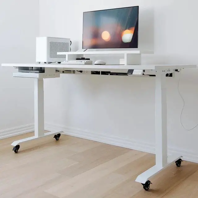 Lets get this Desky RollinIf you need to move your sit stand around, you dont want to be lifting it every time. But equally, the last thing you want to do is to compromise the stability of your desk. Our castor wheels are specifically designed to be fitted to sit stand desks. They provide total stability, and can be locked solid when your desk is static. Built to withstand constant strain, each wheel alone can safely bear up to 110.2 lbs of weight. Protective polyurethane wheels will also protect your floor from damage, allowing you to reposition your sit stand desk at will.