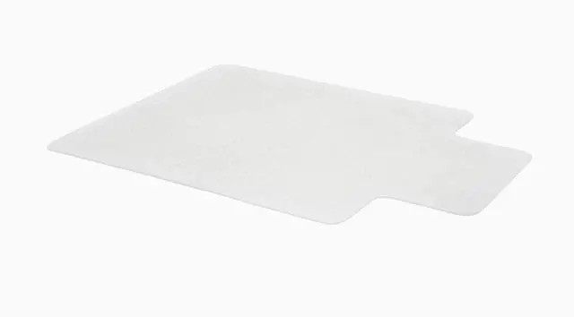 Desky Chair MatThe Desky Chair Mat is a heavy duty, plastic chair mat which will protect your flooring or carpet from any damage or additional wear that is commonly caused by the caster wheels of an office chair. The translucent design helps keep your space looking as intended with the discrete over floor coverage. This product is delivered rolled up and will have a slight curve when first opened. To flatten, unroll the mat and place it into the desired space. Add weight if necessary to flatten. The Desky Chair Mat is made with durable PVC construction and with the key shape you will find that the mat fits neatly under most desks, helping your chair to guide smoothly within the space.