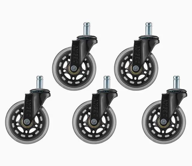 materials: Our Desky 3 inch rubber caster wheels are constructed using high-quality steel, precise ball bearings, and resilient polyurethane. These chair casters are capable of accommodating weights of up to 650lbs (295kg).